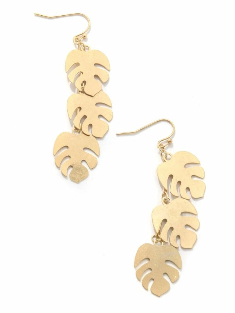 A charming chic unique must have trending in season pair of earrings that features a unique monstera leaf drop earrings design. Perfect for the coming summer season