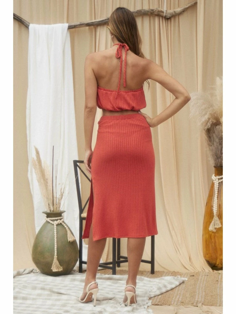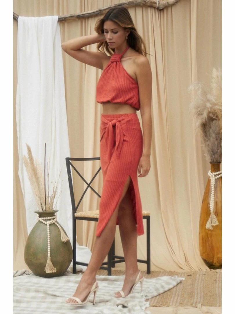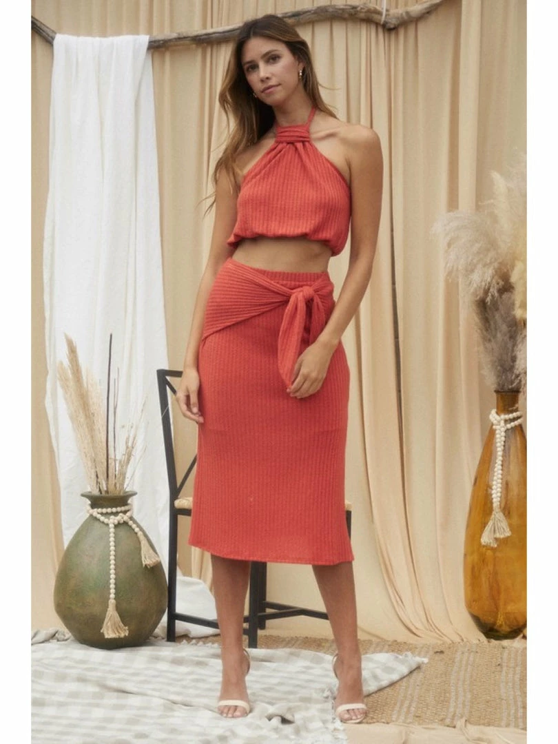 Blue Blush WOMEN KNIT SKIRT WITH SIDE TIES DETAIL WITH CUTOUT