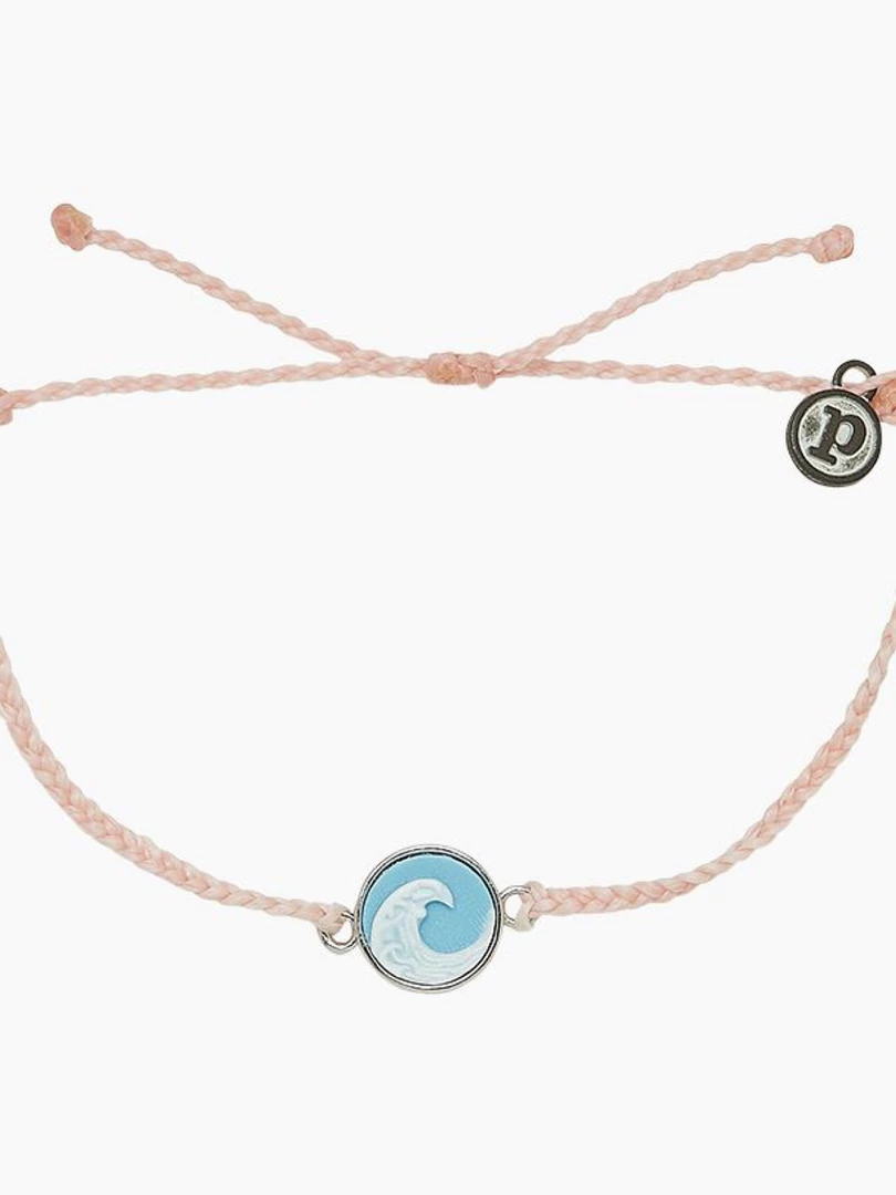 Pura Vida Wave Cameo Charm Silver Bracelet Baby Pink