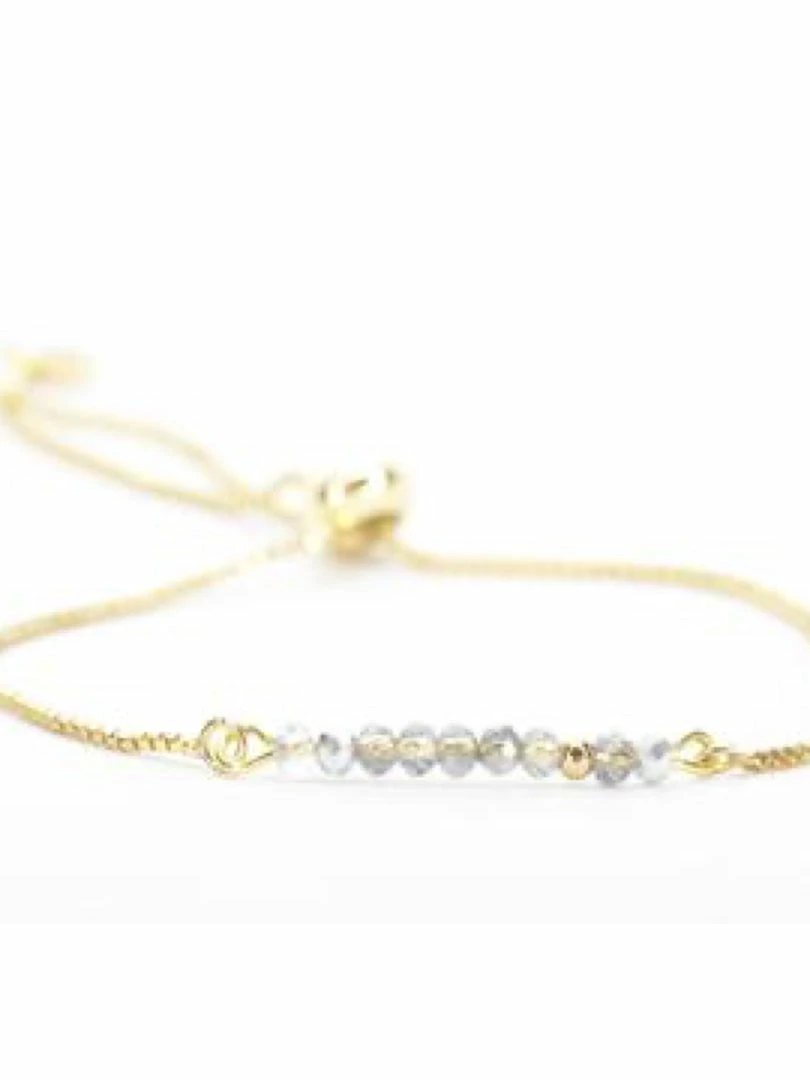 Accessorize your look with this delicate bolo bracelet with crystal beads that glitter in the sunshine. Perfect for layering or wearing alone.