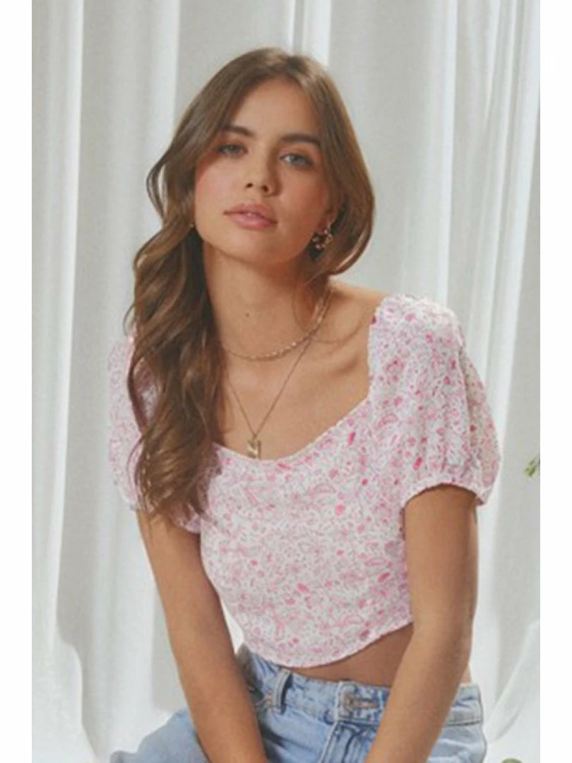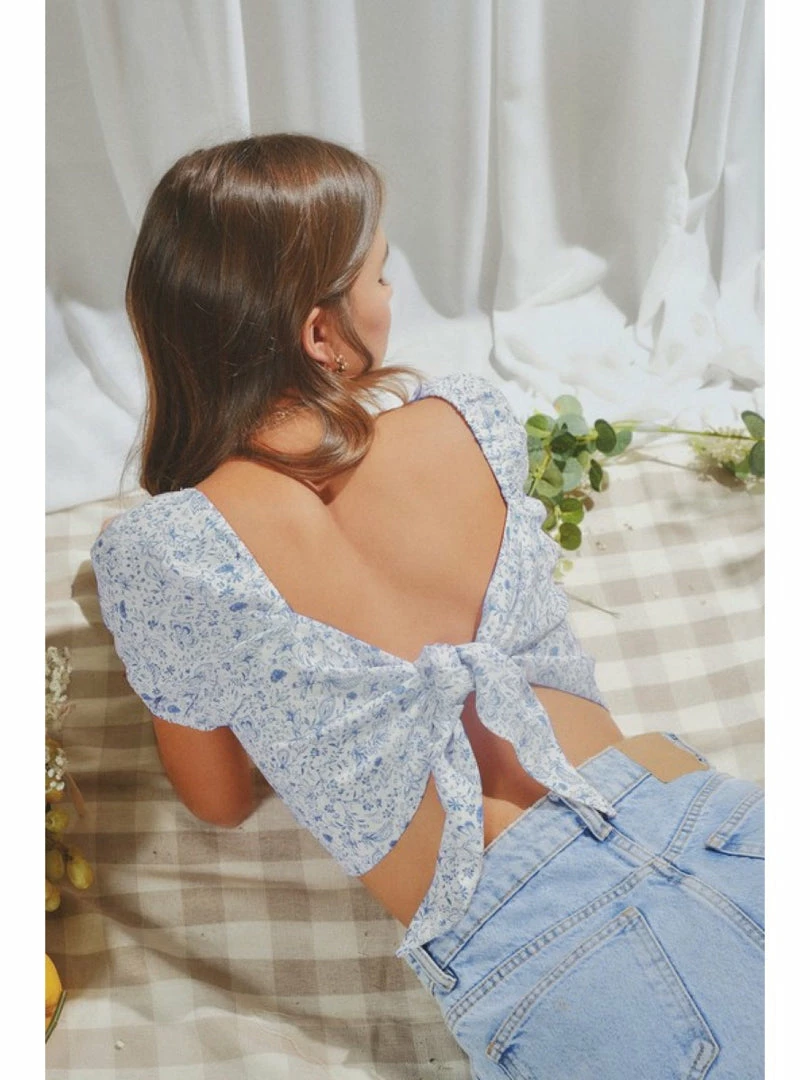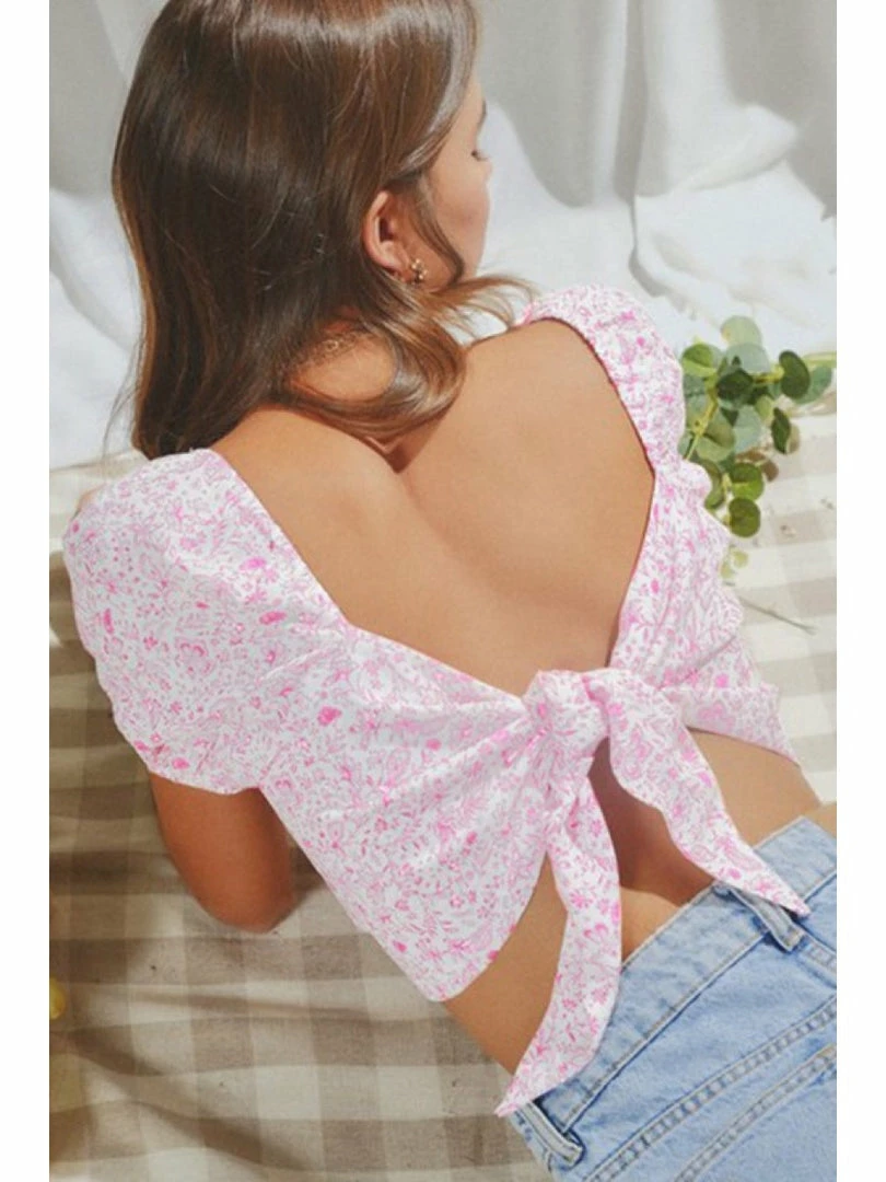 FLORAL PRINTED BACK TIE CROP TOP