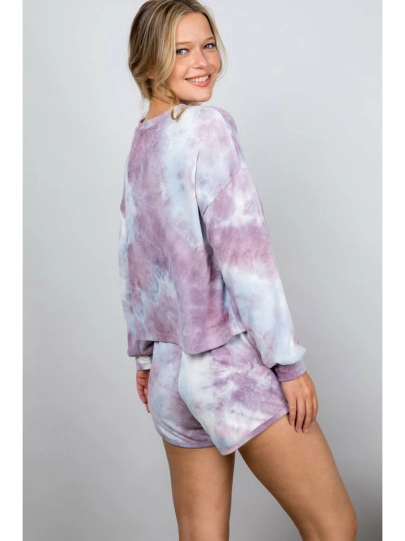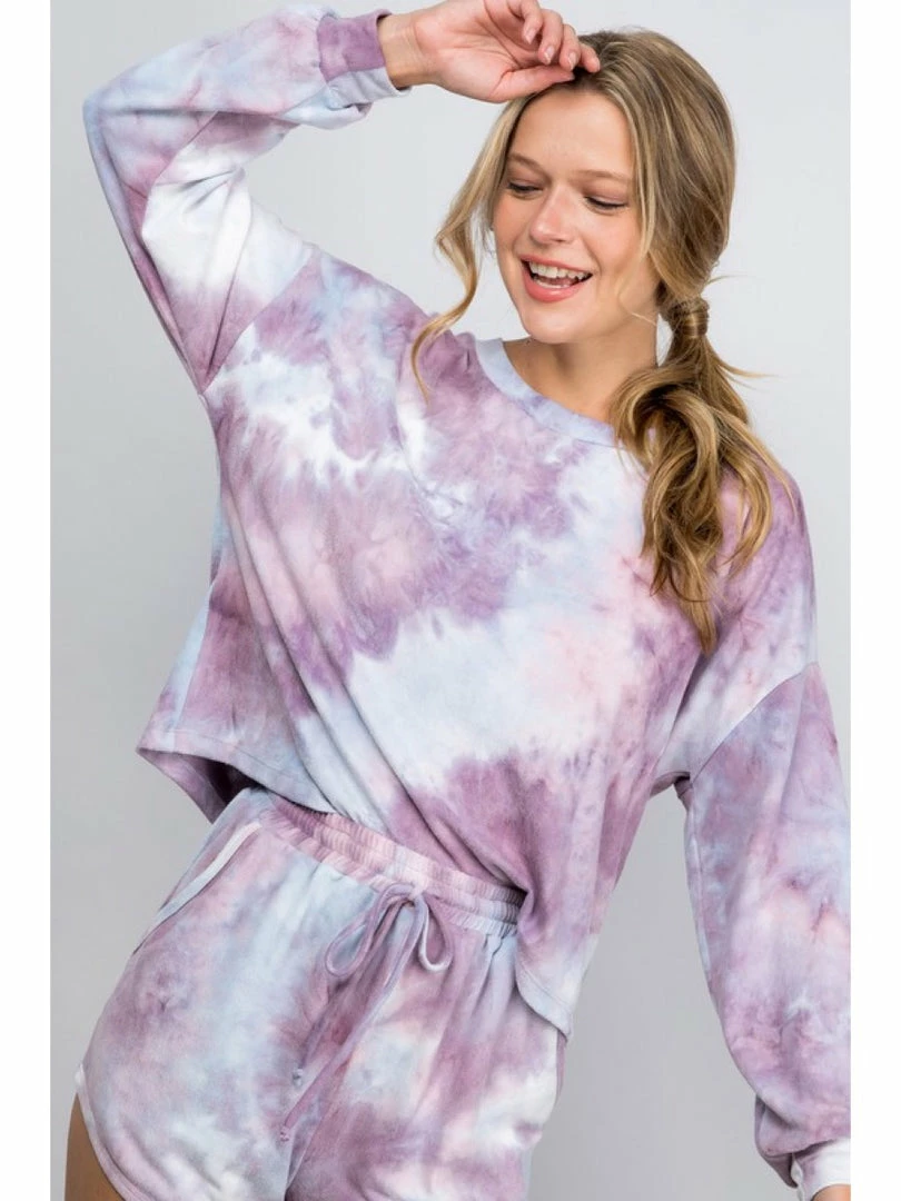 An allover tie dye print featuring long sleeve top