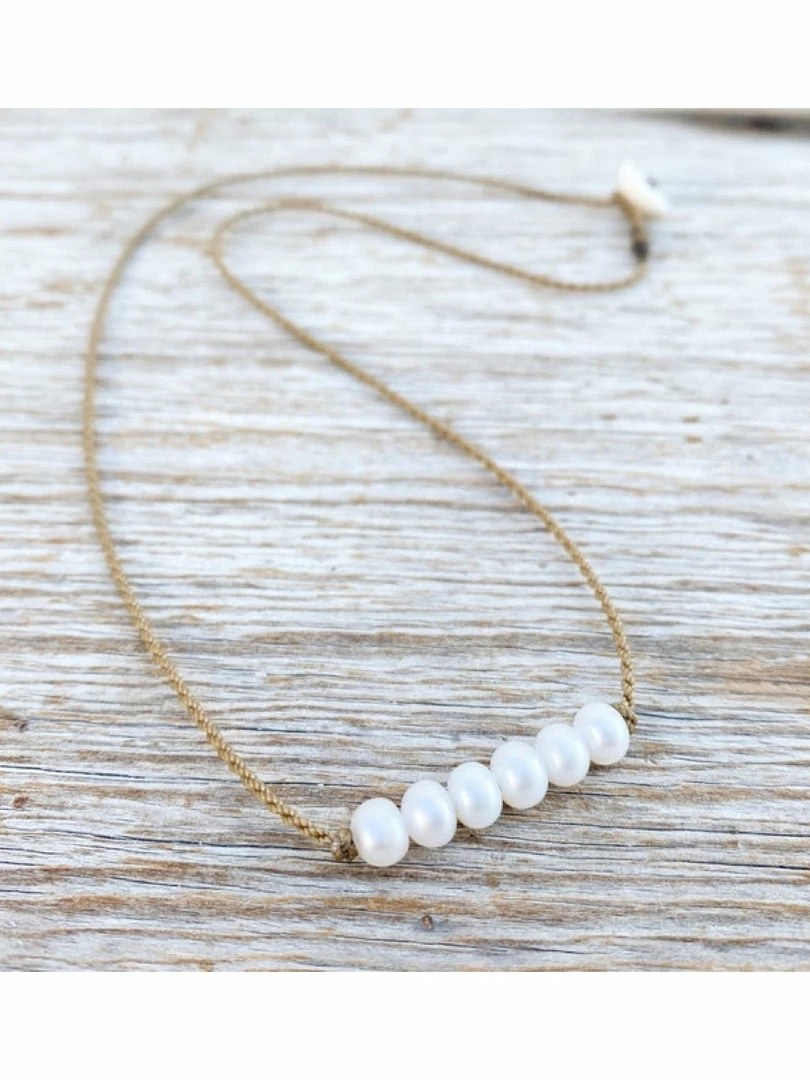 Leaf In Creek Necklaces Tula Blue Bohemian Necklace-0050-White Pearl Rondelle Petite