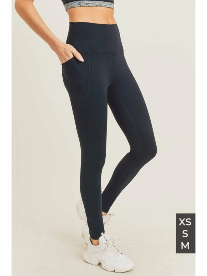 This pair of solid leggings comes with side pockets and no embellishment for a demure and versatile look. It features the new Mono B tapered waistband technology, meaning almost the same tummy-control effect, only with lesser restriction, allowing you to move with more freedom. 87% nylon, 13% spandex. New tapered waistband for more freedom of movement. Tummy control. Moisture-wicking. Four-way stretch. Made in Vietnam.