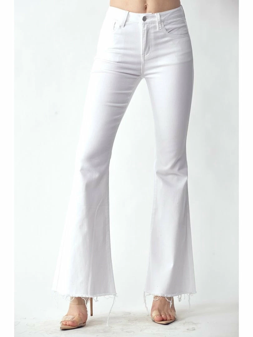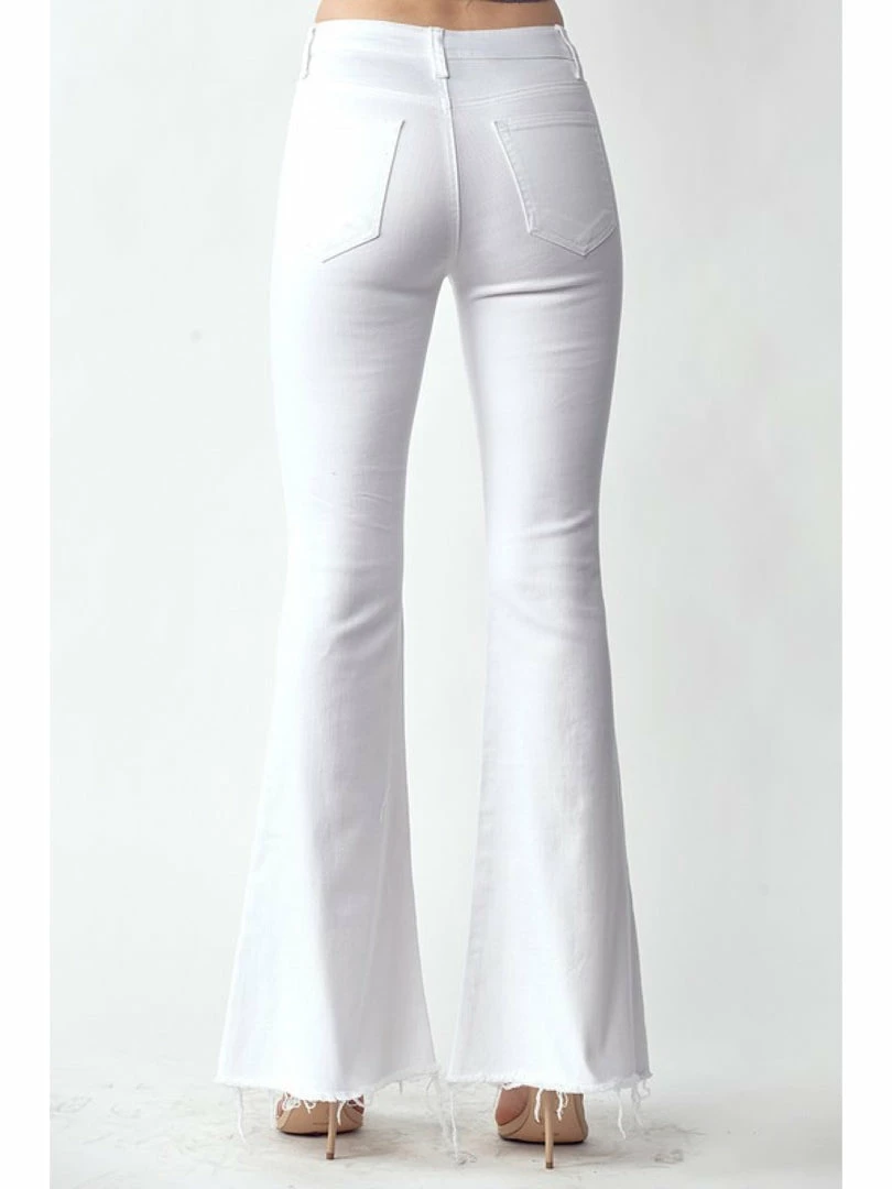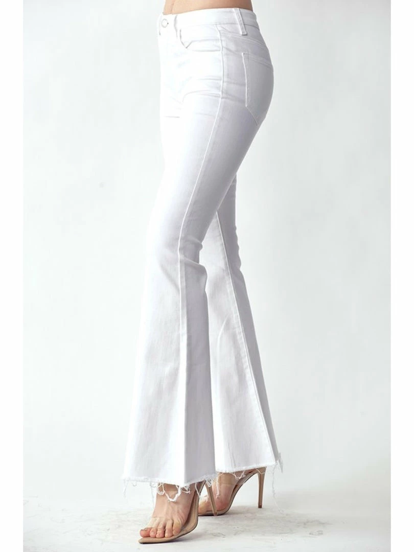 MID RISE RAW HEM KICK FLARE - Waist 27" | Rise 9.5" | Inseam 31" in size 3/26 - Model Info: Height 5' 7" | Waist 24" | Hip 35"