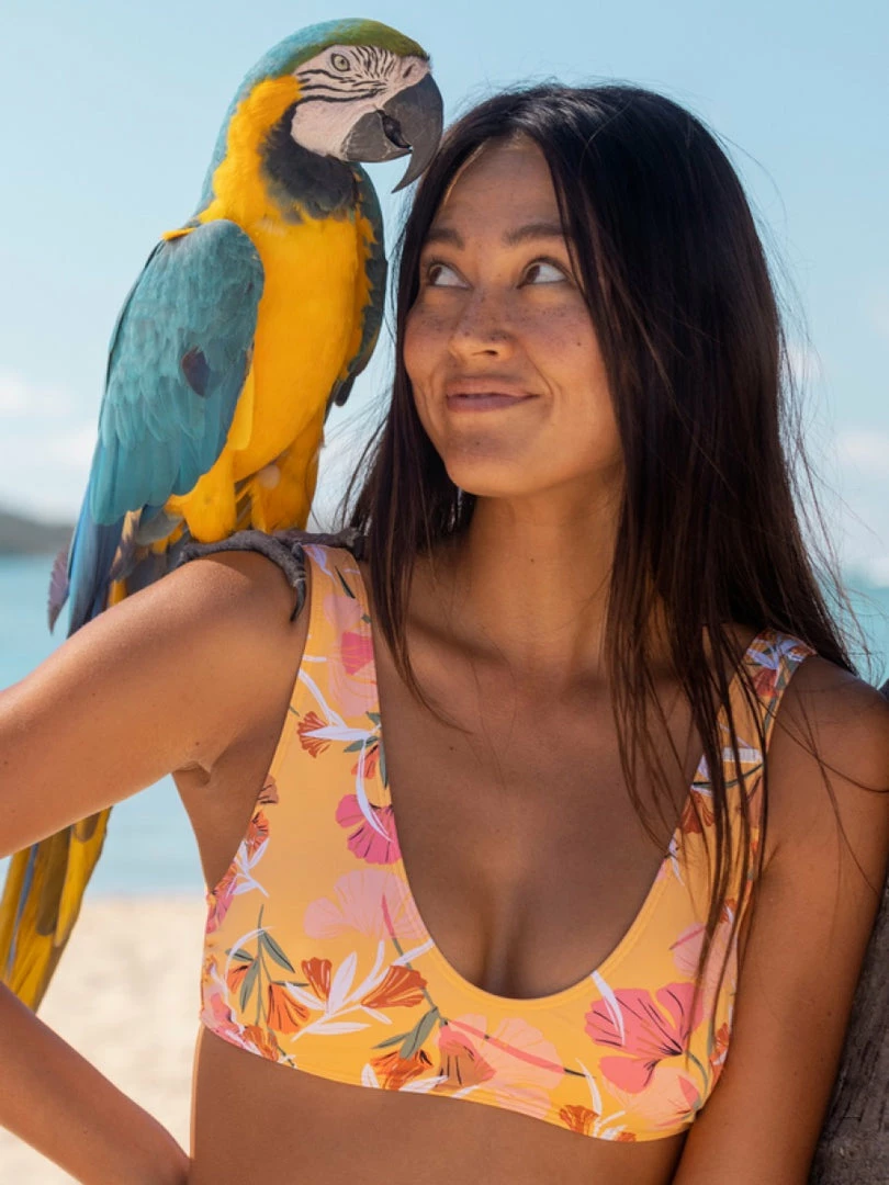 It’s all about bright and bold colorways this summer, so get beach-ready with this bralette bikini top of the Printed Beach Classics Collection. The recycled swim fabric is super-soft, while the adjustable back tie closure adds a feminine finish.