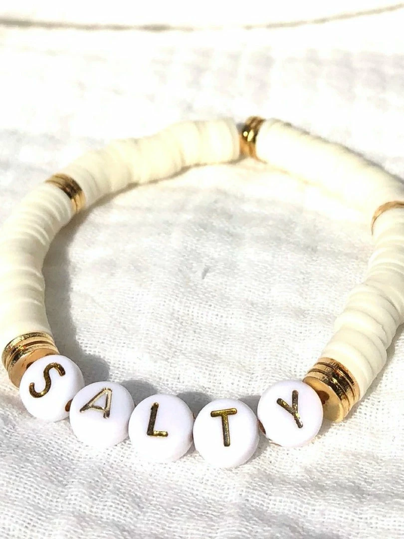 Be the first to review “Silver Girl Word Heishi Stretch Bracelet” Cancel reply
