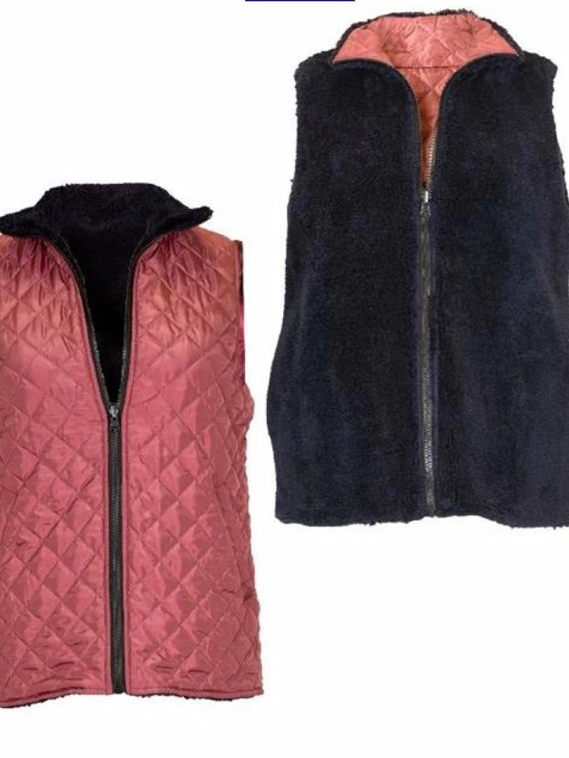 Reversible vests with a full front zipper, small in seam woven Simply Southern tag, and two front pockets on both sides. Side 1 is a colored quilted design and side 2 is a neutral fleece material.