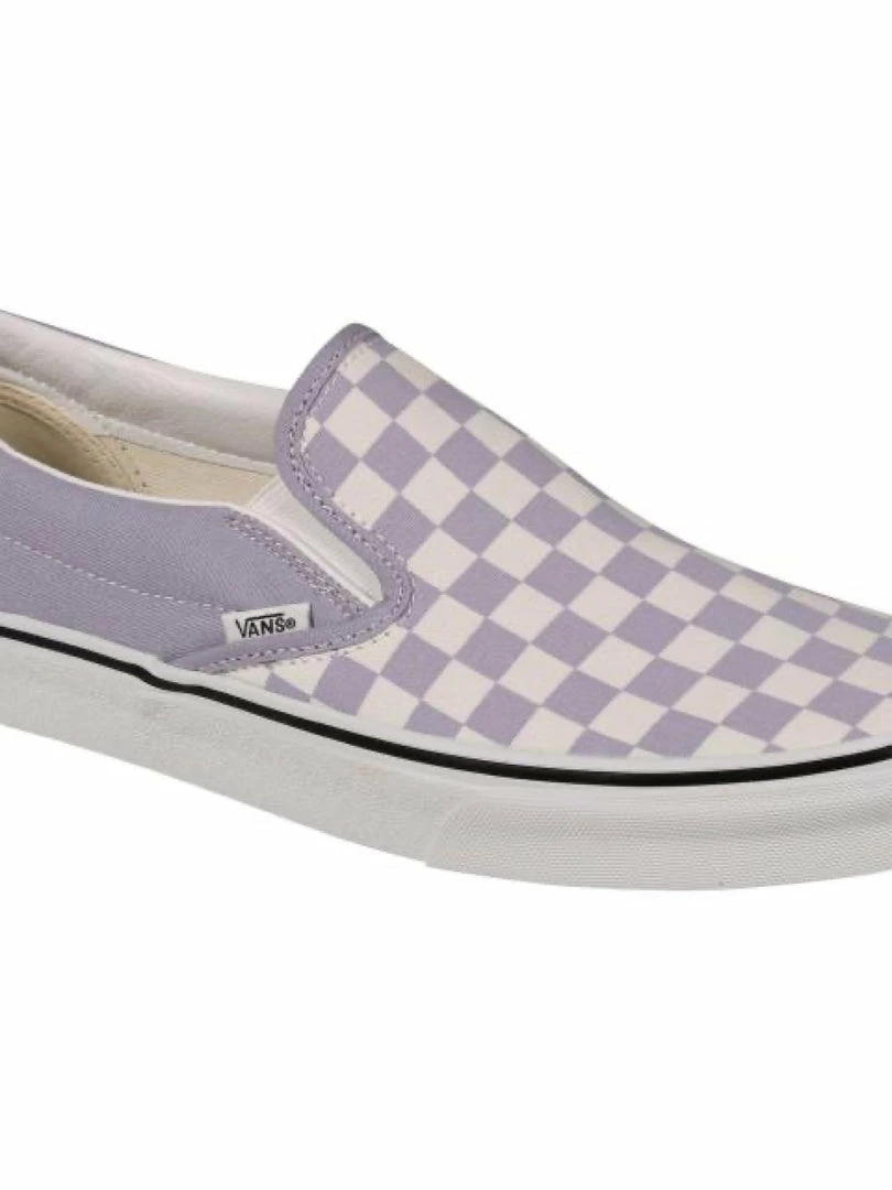 The Classic Slip-On has a low profile, slip-on canvas upper with all-over checkerboard print, elastic sides with foxing stripe and outsole details just like the original.