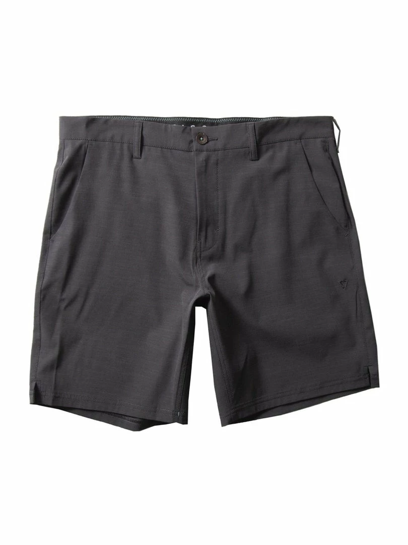 Our classic hybrid with a shorter leg. 4 -Way stretch quick dry textured fabric with recycled poly Repreve. Style features back pockets with zipped closure on wearers left. Side slash pockets with mesh lining. Chambray lined waistband with center front button closure and locking coil zipper at fly.