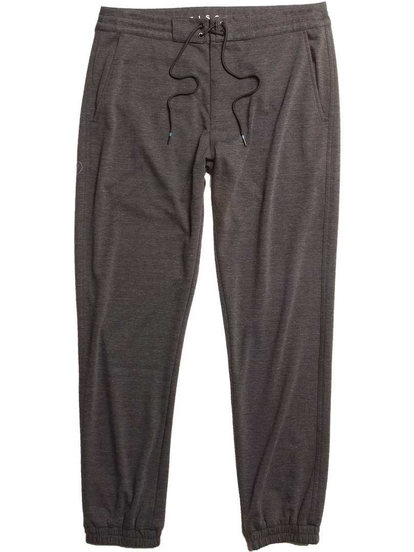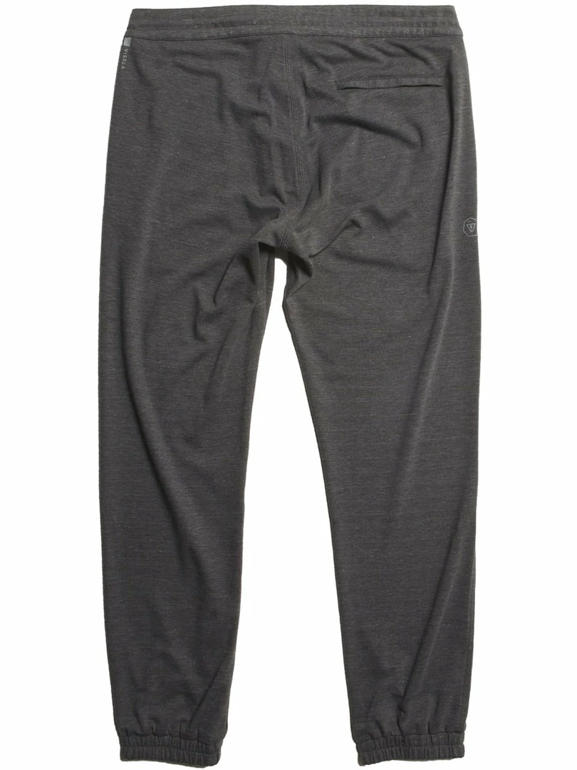 Performance weight and wicking upcycled poly Repreve/rayon interlock. Style features include zipper closure at back pocket high density printed logos side seam slash pockets elastic cuffs and tethered waistband.