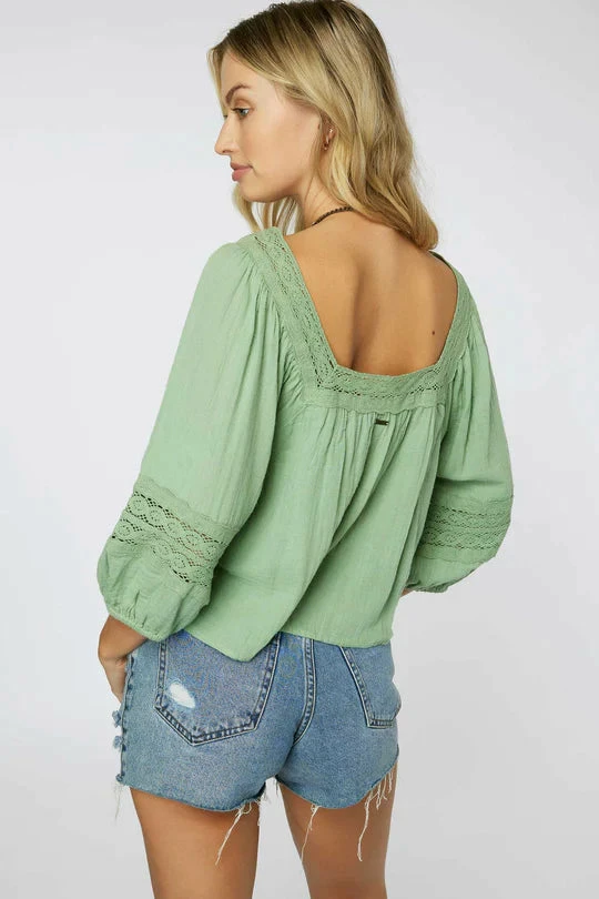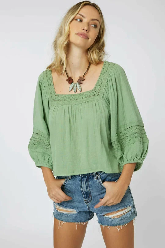 A fun and flowy woven top that has a square neck design, skimmer length fit and panel print detail.