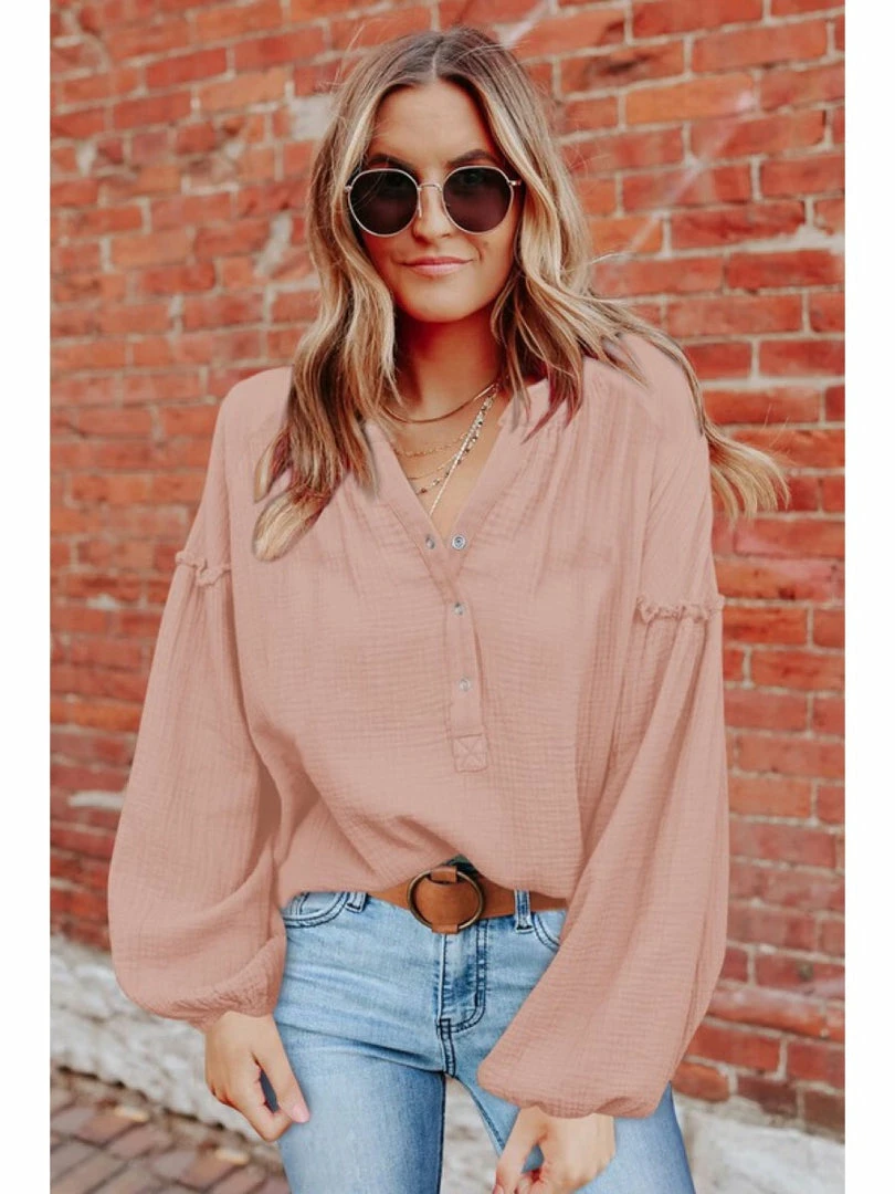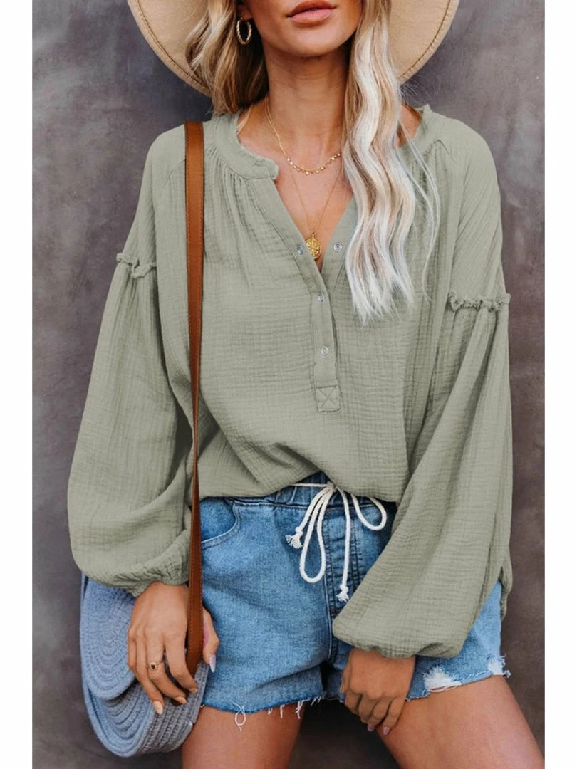 Youmi WOMEN Casual Balloon Sleeve Crinkled Top